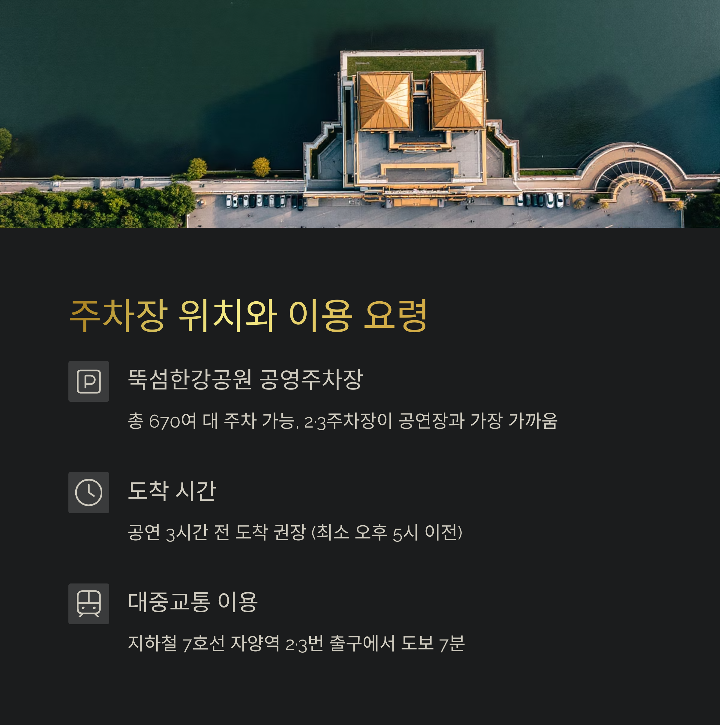- 2·3주차장: 공연장과 가장 가까움 (추천)