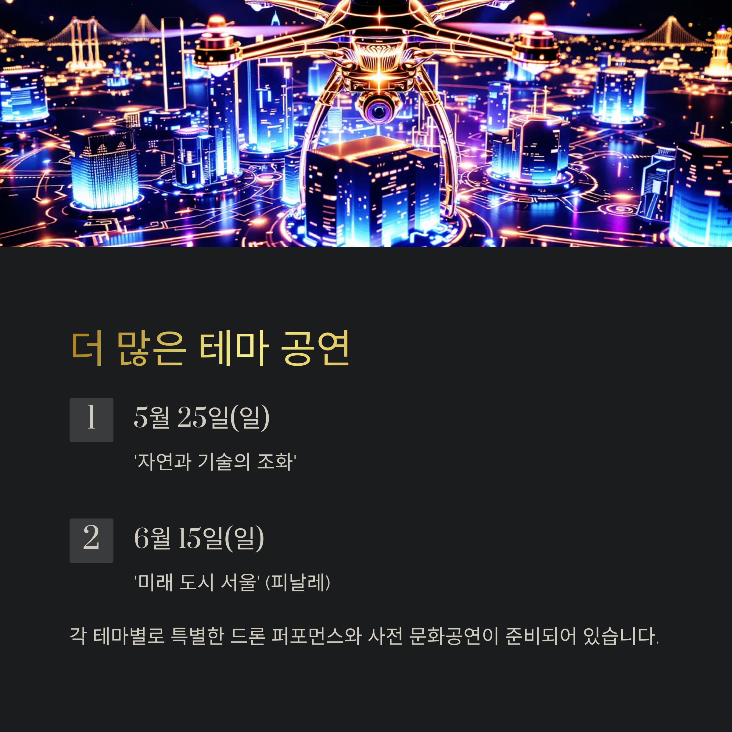 - 4월 27일(토) : ‘찬란한 비상’ (2,000대 드론)