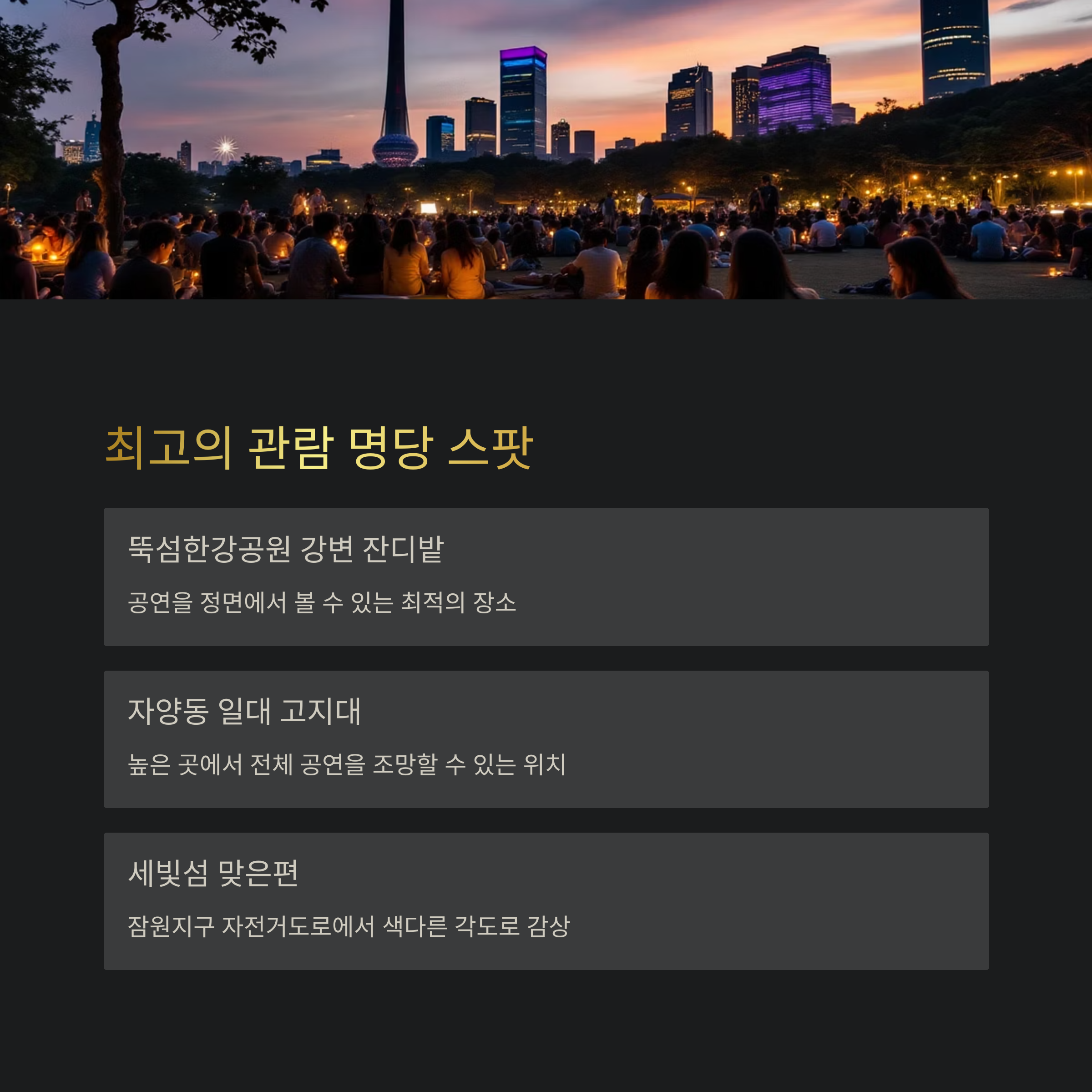- 사전 문화공연과 한강 야경 함께 즐기기