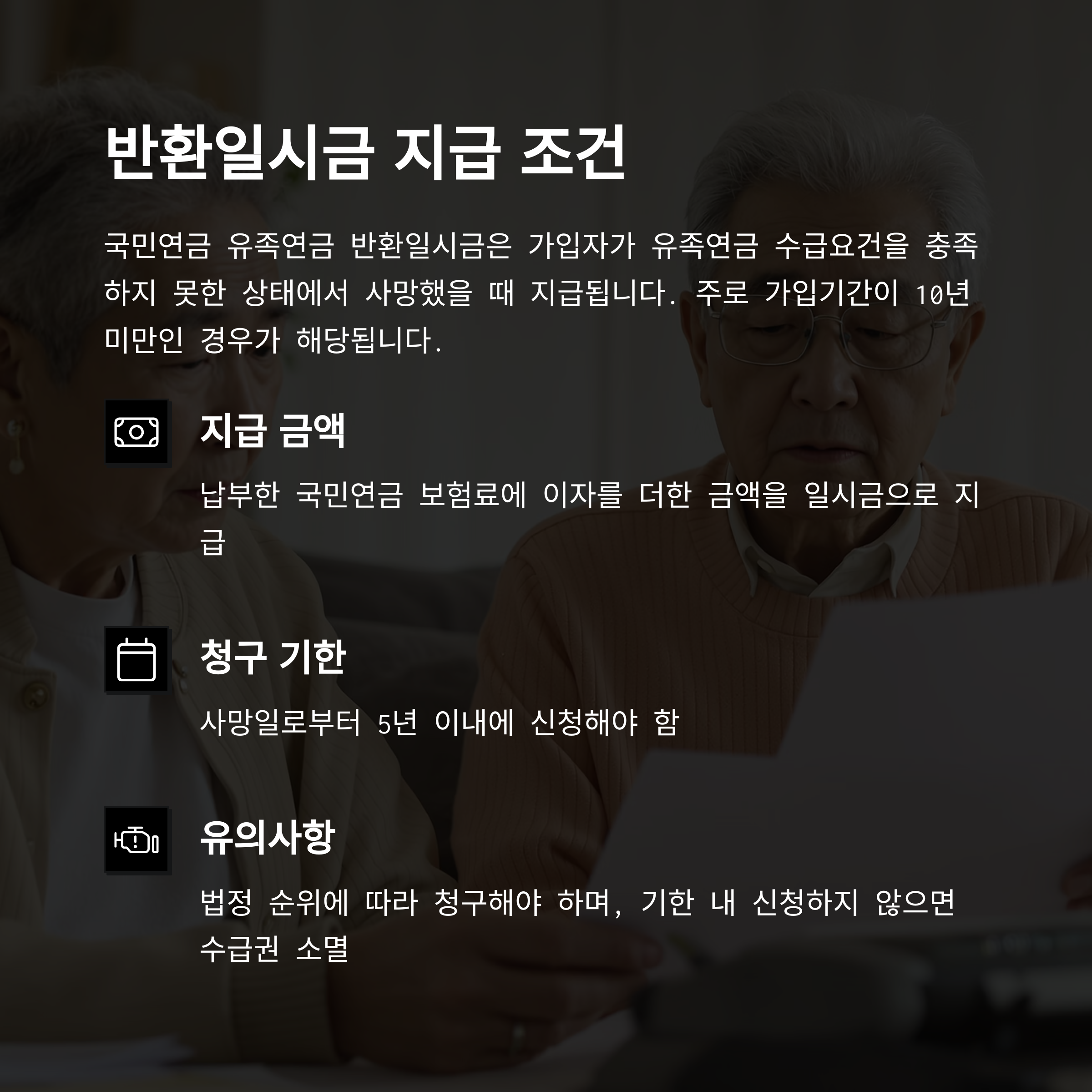 1. 반환일시금: 국민연금 유족연금 수급 요건 미충족 시 지급