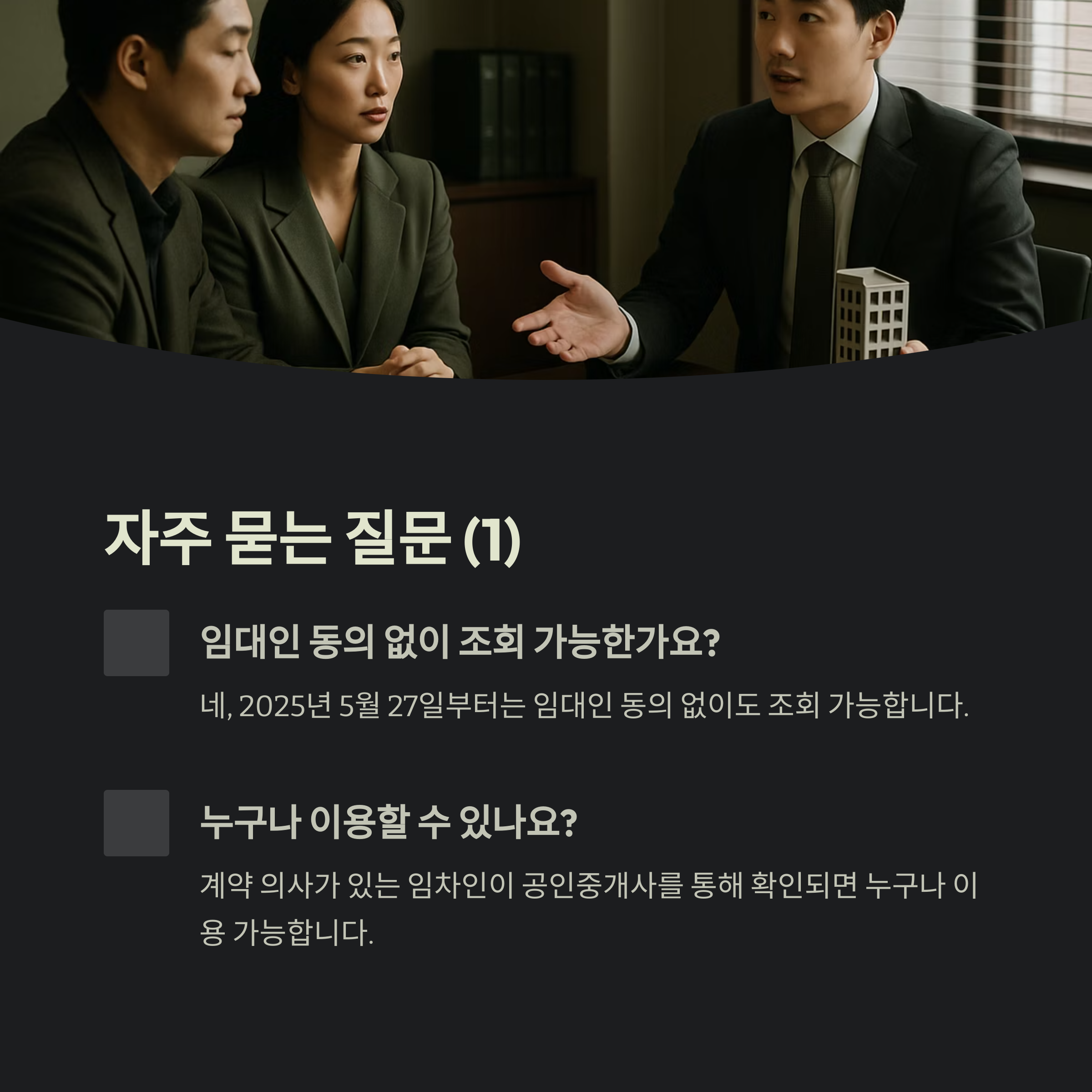 A1. 네, 2025년 5월 27일부터는 임대인의 동의 없이도 조회가 가능합니다.